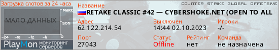 RETAKE CLASSIC #42 — CYBERSHOKE.NET (OPEN TO ALL - 9 SLOTS, 128 TICK) представлен в виде
