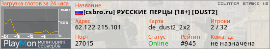 ID: 73604Ссылка: https://playmon.ru/server/62.122.215.101:27015
