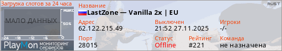 ID: 73775Ссылка: https://playmon.ru/server/62.122.215.49:28015