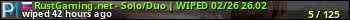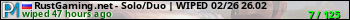 RustGaming.net - Solo/Duo | WIPED 02/26 26.02 представлен в виде сервера раст. Из всех имеющихся на сайте модификаций игровых серверов, вам может понравиться Loot серверы rust. А для быстрой навигации по всем меткам - используйте главную страницу игры Rust.