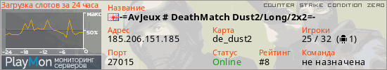 ID: 69355Ссылка: https://playmon.ru/server/185.206.151.185:27015