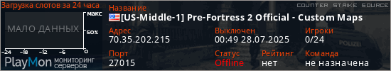 [US-Middle-1] Pre-Fortress 2 Official - Custom Maps представлен в виде сервера ксс. Из всех имеющихся на сайте модификаций игровых серверов, вам может понравиться DeathRun серверы css. А для быстрой навигации по всем меткам - используйте главную страницу игры Counter Strike Source.