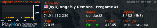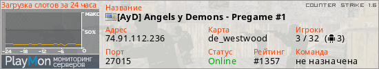 [AyD] Angels y Demons - Pregame #1 представлен в виде сервера кс 1.6. Из всех имеющихся на сайте модификаций игровых серверов, вам может понравиться DeathMatch серверы cs. А для быстрой навигации по всем меткам - используйте главную страницу игры Counter Strike 1.6.
