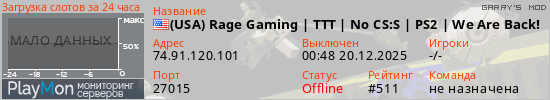ID: 71715Ссылка: https://playmon.ru/server/74.91.120.101:27015