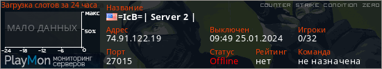 Общая информация ID: 56064 Ссылка: https://playmon.ru/server/74.91.122.19:27015 Адрес: 74.91.122.19:27015 Игроки: 0/32 Статус: Выключен Владелец: Не определён