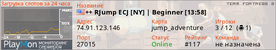 ++ RJump ECJ [NY] | Beginner [08:07] представлен в виде сервера тф2. Из всех имеющихся на сайте модификаций игровых серверов, наша система поставила метку Jump сервера tf2. В нашем мониторинге игровых серверов вы так же можете найти быструю навигацию по всем меткам - используйте главную страницу игры Team Fortress 2.