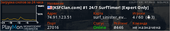 [KSFClan.com] #1 24/7 SurfTimer! [Expert Only] представлен в виде сервера ксс. Из всех имеющихся на сайте модификаций игровых серверов, наша система поставила метку Surf сервера css. В нашем мониторинге игровых серверов вы так же можете найти быструю навигацию по всем меткам - используйте главную страницу игры Counter Strike Source.