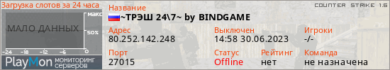 ~ТРЭШ 24\7~ by BINDGAME представлен в виде сервера кс 1.6. Из всех имеющихся на сайте модификаций игровых серверов, вам может понравиться Knife серверы cs. А для быстрой навигации по всем меткам - используйте главную страницу игры Counter Strike 1.6.