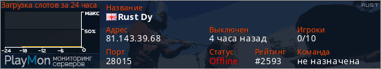 ID: 83100Ссылка: https://playmon.ru/server/81.143.39.68:28015