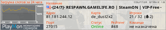 -[24/7]- RESPAWN.GAMELIFE.RO | SteamON | VIP-Free -