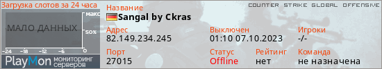 Общая информация ID: 58892 Ссылка: https://playmon.ru/server/82.149.234.245:27015 Адрес: 82.149.234.245:27015 Игроки: 0/16 Статус: Выключен Владелец: Не определён