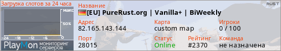 ID: 82345Ссылка: https://playmon.ru/server/82.165.143.144:28015