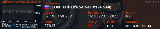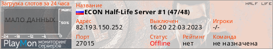 Общая информация ID: 53265 Ссылка: https://playmon.ru/server/82.193.150.252:27015 Адрес: 82.193.150.252:27015 Игроки: 0/7 Статус: Выключен Владелец: Не определён