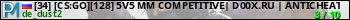 [34] [CS:GO][128] 5V5 MM COMPETITIVE| D00X.RU | ANTICHEAT |NO PLUGINS