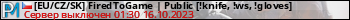 [EU/CZ/SK] FiredToGame | Public [!knife, !ws, !gloves] представлен в виде сервера кс го. Из всех имеющихся на сайте модификаций игровых серверов, вам может понравиться Hide'n'Seek серверы csgo. А для быстрой навигации по всем меткам - используйте главную страницу игры Counter Strike Global Offensive.