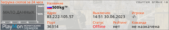 500kg™ представлен в виде сервера кс 1.6. Из всех имеющихся на сайте модификаций игровых серверов, вам может понравиться Knife серверы cs. А для быстрой навигации по всем меткам - используйте главную страницу игры Counter Strike 1.6.