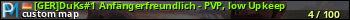 [GER]DuKs#1 Anfängerfreundlich - PVP, low Upkeep представлен в виде сервера раст. Из всех имеющихся на сайте модификаций игровых серверов, вам может понравиться Loot серверы rust. А для быстрой навигации по всем меткам - используйте главную страницу игры Rust.
