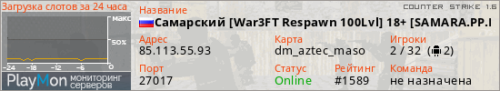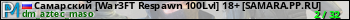 Самарский [War3FT Respawn 100Lvl] 18+ [SAMARA.PP.RU] представлен в виде сервера кс 1.6. Из всех имеющихся на сайте модификаций игровых серверов, наша система поставила метку War3FT сервера cs. В нашем мониторинге игровых серверов вы так же можете найти быструю навигацию по всем меткам - используйте главную страницу игры Counter Strike 1.6.