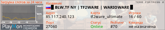 █ BLW.TF NY | TF2WARE | WARIOWARE █ представлен в виде сервера тф2. Из всех имеющихся на сайте модификаций игровых серверов, вам может понравиться JailBreak серверы tf2. А для быстрой навигации по всем меткам - используйте главную страницу игры Team Fortress 2.