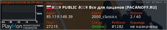 🔥 PUBLIC 🔥 Bce для пaцaнoв [PACANOFF.RU] представлен в виде сервера кс 2. Из всех имеющихся на сайте модификаций игровых серверов, вам может понравиться Knife серверы cs2. А для быстрой навигации по всем меткам - используйте главную страницу игры Counter Strike 2.