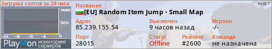 ID: 82494Ссылка: https://playmon.ru/server/85.239.155.54:28015