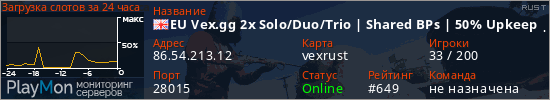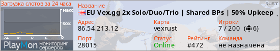 EU Vex.gg 2x Solo/Duo/Trio | Shared BPs | 50% Upkeep |Max 3|x2 представлен в виде сервера раст. Из всех имеющихся на сайте модификаций игровых серверов, вам может понравиться Kits серверы rust. А для быстрой навигации по всем меткам - используйте главную страницу игры Rust.