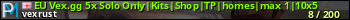 EU Vex.gg 5x Solo Only|Kits|Shop|TP|homes|max 1|10x5 представлен в виде сервера раст. Из всех имеющихся на сайте модификаций игровых серверов, вам может понравиться Kits серверы rust. А для быстрой навигации по всем меткам - используйте главную страницу игры Rust.