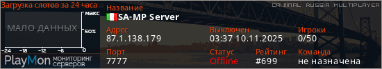 ID: 72500Ссылка: https://playmon.ru/server/87.1.138.179:7777