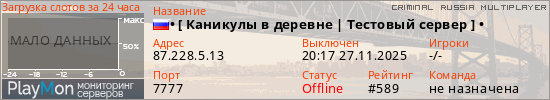 ID: 72391Ссылка: https://playmon.ru/server/87.228.5.13:7777