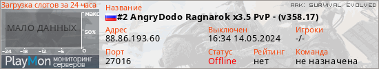 Общая информация ID: 35460 Ссылка: https://playmon.ru/server/88.86.193.60:27016 Адрес: 88.86.193.60:27016 Игроки: 0/70 Статус: Выключен Владелец: Не определён