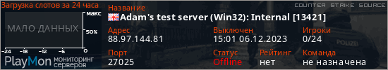 Adam's test server (Win32): Internal [13421] представлен в виде сервера ксс. Из всех имеющихся на сайте модификаций игровых серверов, вам может понравиться AWP серверы css. А для быстрой навигации по всем меткам - используйте главную страницу игры Counter Strike Source.