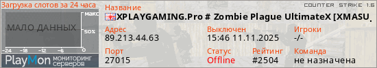 XPLAYGAMING.Pro # Zombie Plague UltimateX [FDL + VIP 22-12PM + POINTS] ® представлен в виде сервера кс 1.6. Из всех имеющихся на сайте модификаций игровых серверов, наша система поставила метку Zombie сервера cs. В нашем мониторинге игровых серверов вы так же можете найти быструю навигацию по всем меткам - используйте главную страницу игры Counter Strike 1.6.