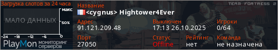 <cygnus> Hightower4Ever представлен в виде сервера тф2. Из всех имеющихся на сайте модификаций игровых серверов, вам может понравиться Jump серверы tf2. А для быстрой навигации по всем меткам - используйте главную страницу игры Team Fortress 2.