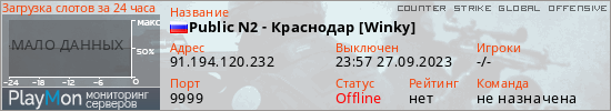 Public N2 - Краснодар [Winky] представлен в виде сервера кс го. Из всех имеющихся на сайте модификаций игровых серверов, вам может понравиться Knife серверы csgo. А для быстрой навигации по всем меткам - используйте главную страницу игры Counter Strike Global Offensive.
