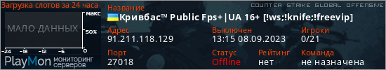 Кривбас™ Public Fps+|UA 16+ [!ws;!knife;!freevip] представлен в виде сервера кс го. Из всех имеющихся на сайте модификаций игровых серверов, вам может понравиться Retake серверы csgo. А для быстрой навигации по всем меткам - используйте главную страницу игры Counter Strike Global Offensive.