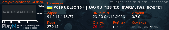 [РС] PUBLIC 16+ | UA/RU [128 TIC, !FARM, !WS, !KNIFE] представлен в виде сервера кс го. Из всех имеющихся на сайте модификаций игровых серверов, вам может понравиться Retake серверы csgo. А для быстрой навигации по всем меткам - используйте главную страницу игры Counter Strike Global Offensive.