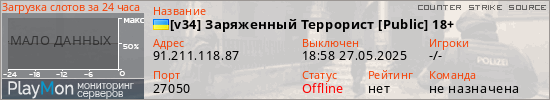 [v34] Заряженный Террорист [Public] 18+ представлен в виде сервера ксс. Из всех имеющихся на сайте модификаций игровых серверов, вам может понравиться GunGame серверы css. А для быстрой навигации по всем меткам - используйте главную страницу игры Counter Strike Source.