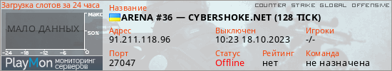 ARENA #36 — CYBERSHOKE.NET (128 TICK) представлен в виде сервера кс го. Из всех имеющихся на сайте модификаций игровых серверов, вам может понравиться Retake серверы csgo. А для быстрой навигации по всем меткам - используйте главную страницу игры Counter Strike Global Offensive.