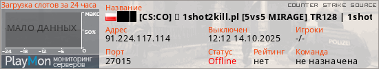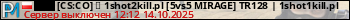 ███ [CS:CO] ★ 1shot2kill.pl [5vs5 MIRAGE] TR128 | 1shot1kill.pl представлен в виде сервера ксс. Из всех имеющихся на сайте модификаций игровых серверов, вам может понравиться DeathMatch серверы css. А для быстрой навигации по всем меткам - используйте главную страницу игры Counter Strike Source.
