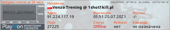 Общая информация ID: 54699 Ссылка: https://playmon.ru/server/91.224.117.19:27225 Адрес: 91.224.117.19:27225 Игроки: 0/10 Статус: Выключен Владелец: Не определён