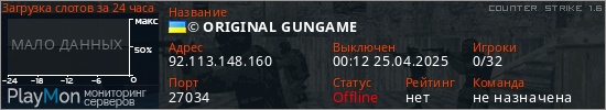 Общая информация ID: 67106 Ссылка: https://playmon.ru/server/92.113.148.160:27034 Адрес: 92.113.148.160:27034 Игроки: 0/32 Статус: Выключен Владелец: Не определён