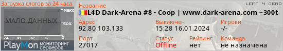 Общая информация ID: 47529 Ссылка: https://playmon.ru/server/92.80.103.133:27017 Адрес: 92.80.103.133:27017 Игроки: 0/16 Статус: Выключен Владелец: Не определён