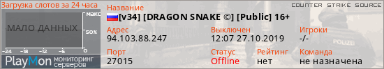 Общая информация ID: 28125 Ссылка: https://playmon.ru/server/94.103.88.247:27015 Адрес: 94.103.88.247:27015 Игроки: 0/24 Статус: Выключен Владелец: Не определён
