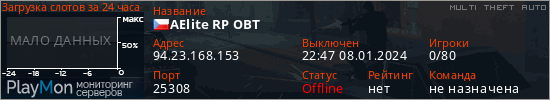 Общая информация ID: 61745 Ссылка: https://playmon.ru/server/94.23.168.153:25308 Версия: 1.5n Адрес: 94.23.168.153:25308 Игроки: 0/80 Статус: Выключен Владелец: Не определён