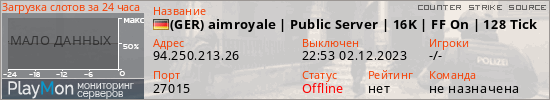 (GER) aimroyale | Public Server | 16K | FF On | 128 Tick представлен в виде сервера ксс. Из всех имеющихся на сайте модификаций игровых серверов, вам может понравиться DeathRun серверы css. А для быстрой навигации по всем меткам - используйте главную страницу игры Counter Strike Source.