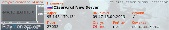Общая информация ID: 53233 Ссылка: https://playmon.ru/server/95.143.179.131:27052 Адрес: 95.143.179.131:27052 Игроки: 0/12 Статус: Выключен Владелец: Не определён