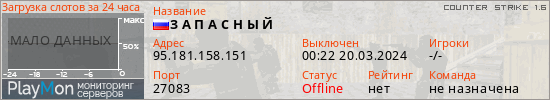 З А П А С Н Ы Й представлен в виде сервера кс 1.6. Из всех имеющихся на сайте модификаций игровых серверов, вам может понравиться Hide'n'Seek серверы cs. А для быстрой навигации по всем меткам - используйте главную страницу игры Counter Strike 1.6.