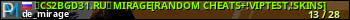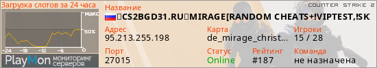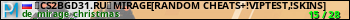 ⚫CS2BGD31.RU❤MIRAGE[RANDOM CHEATS+!VIPTEST,!SKINS] представлен в виде сервера кс 2. Из всех имеющихся на сайте модификаций игровых серверов, вам может понравиться Retake серверы cs2. А для быстрой навигации по всем меткам - используйте главную страницу игры Counter Strike 2.