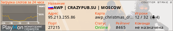 AWP | CRAZYPUB.SU | MOSCOW представлен в виде сервера кс 2. Из всех имеющихся на сайте модификаций игровых серверов, наша система поставила метку AWP сервера cs2. В нашем мониторинге игровых серверов вы так же можете найти быструю навигацию по всем меткам - используйте главную страницу игры Counter Strike 2.