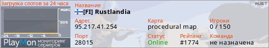 ID: 82761Ссылка: https://playmon.ru/server/95.217.41.254:28015